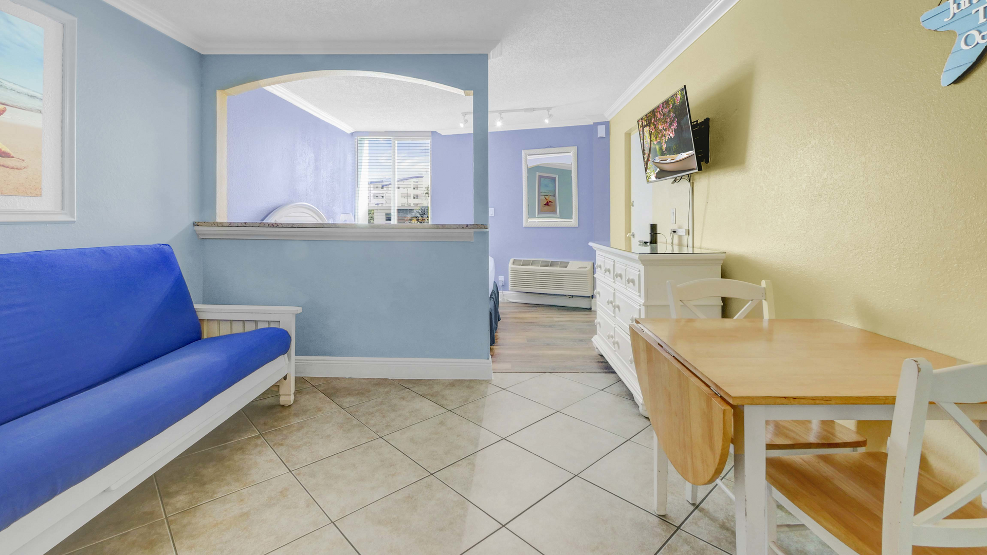 This cozy 2nd-floor Studio is the best value for experiencing Clearwater Beach. Perfect for couples or small families, it sleeps up to 4 with one queen bed and a full-size sleeper futon.