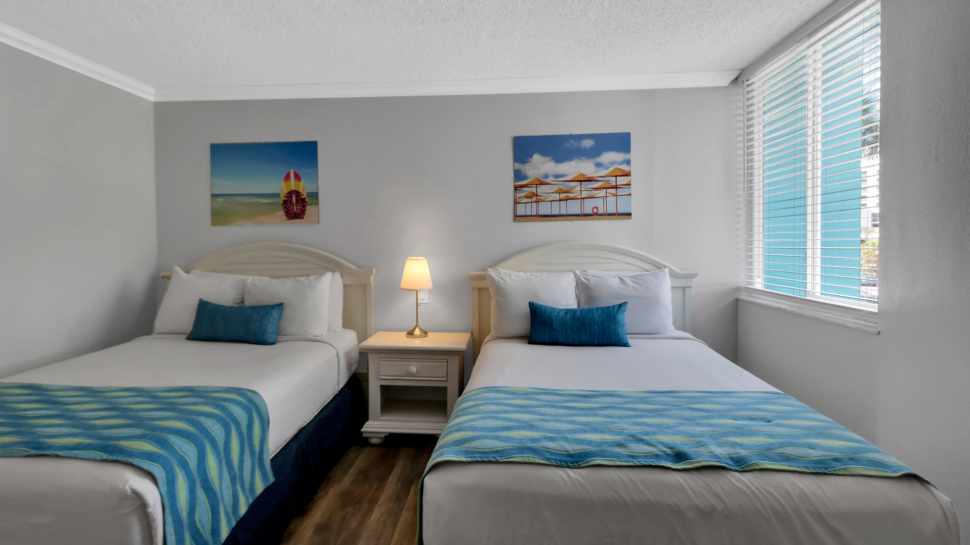 This spacious 2nd-floor Double Suite overlooks the pool and features a partial Gulf view. Perfect for families or groups, it sleeps up to 6 with two full-size beds and a full-size sleeper futon.