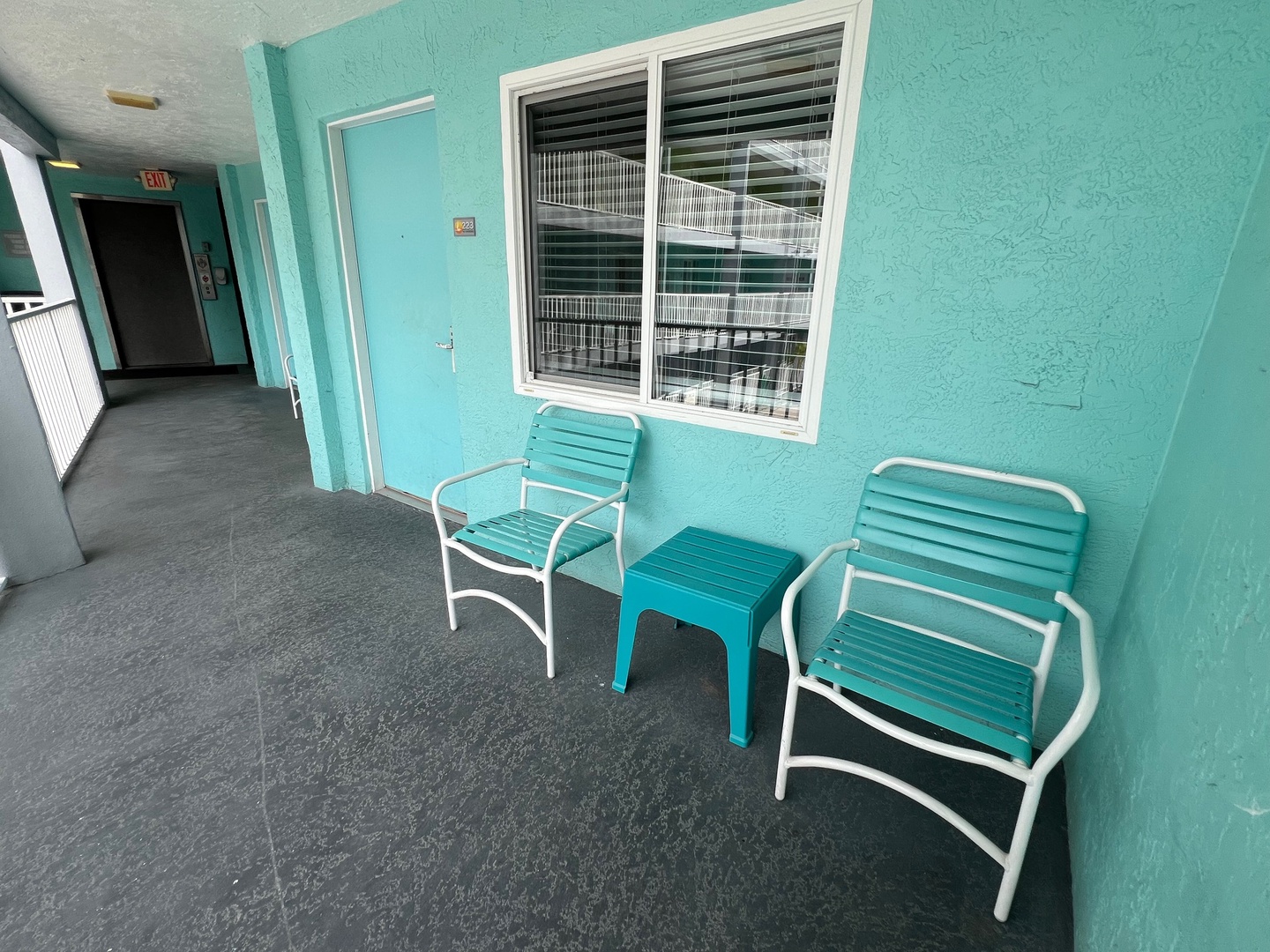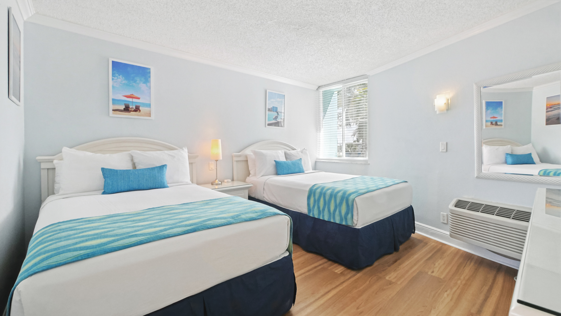 This updated 2nd-floor Double Suite overlooks the pool and features a partial Gulf view. Perfect for families or groups, it sleeps up to 6 with two full-size beds and a full-size sleeper futon.